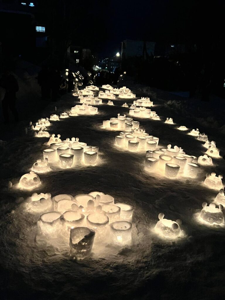 「小樽雪あかりの路」は、小樽の冬の風物詩として1999年から毎年2月に開催されている小樽市内の歴史的街並みや運河、廃線跡地などを無数の雪のオブジェとロウソクの灯りで幻想的に彩るイベントです。