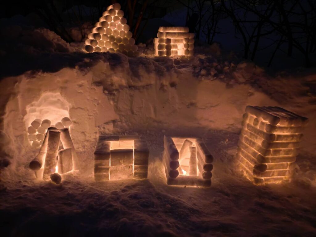 2月9日(月)〜2月14日(土) 9日以降は日中は降雪などにより破損したオブジェの補修、管理。 夜はロウソクの点灯、消灯、回収を行いました。